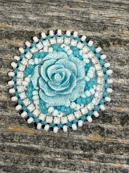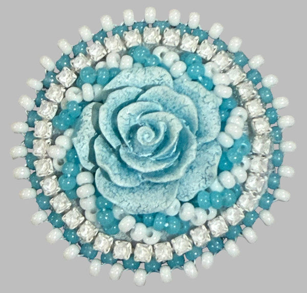 Beaded flower badge reel, badge holder