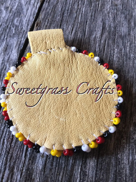 Medicine wheel beaded moose hide keychain