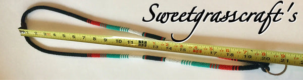 This Turquoise green, red and black seed bead lanyard comes with a key chain making it very useful, it can hold keys, ID badges as well as reading glasses.