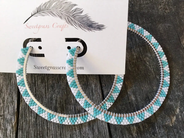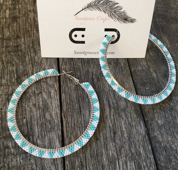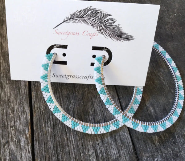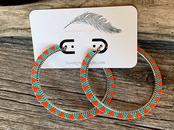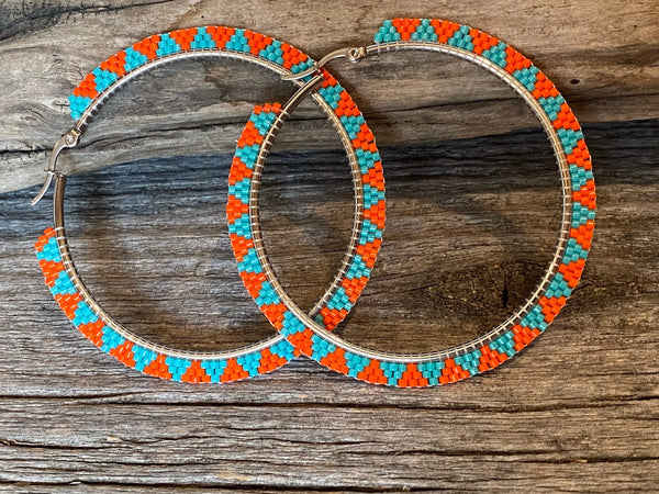 These earrings are done in brick stitch with stunning turquoise & white or orange delica bead