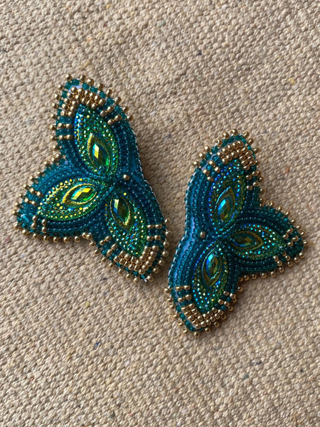 Our teal green hand-beaded earrings are a testament to craftsmanship and style—measuring 1 ½” wide and nearly 3” long for the perfect statement.